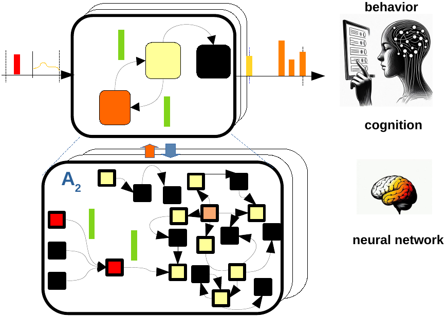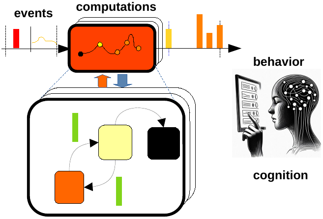 Tracking the relevant activity in networks of submodels (e.g., neurons), simulations, with sparse computations, are achieved for the models developed at modeling step. Using this approach allows simulating a billion of stochastic computational processes instead of usual ten or so.